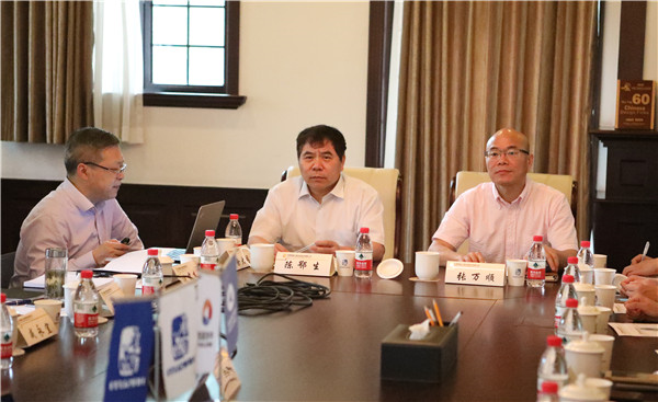 On June 12, Chairman Chen Esheng, General Manager Zhang Wanshun, Deputy CPC Secretary Ma Siyi and Deputy General Manager Ren Jianping of Sinolight Corporation and their party paid a survey and direction to the Shanghai Headquarters of China Haisum Engineering Co., Ltd. The new leadership team led by Chairman Xu Datong of China Haisum Engineering Co., Ltd. received the corporation leaders and their party, and presented a work report.