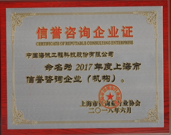 Shanghai Consulting Trade Association has recently announced the list of winners of the Twelfth Credible Consulting Enterprises (Agencies) of Shanghai in 2017. A total of 45 Shanghai-based consulting companies (agencies) won this honorary title.