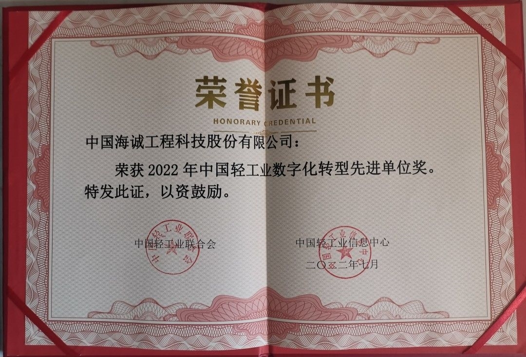 From July 27 to 28, the 12th China Light Industry Informatization Conference in 2022 with the theme of "Digital Intelligence Leading Innovation and Transformation" was held in Hangzhou, with more than 400 government representatives, industry experts, enterprise elites and other honored guests attending the conference. At the event, China Haisum and its subsidiary China GDE Engineering Co., Ltd. (hereinafter referred to as GDE) were awarded the title of Advanced Unit in the Digital Transformation of China's Light Industry; Pan Zhixiang, general manager of the EIM Digital Innovation Center at the headquarters, and Luo Jun, chairman of the GDE, were given the title of Advanced Individual in the Digital Transformation of China's Light Industry!