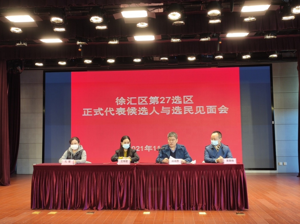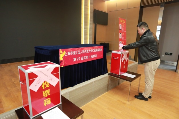 “請(qǐng)出示您的選(xuǎn)民證,並領取選舉票,如果有疑問(wèn),可以向工作人員進行谘詢(xún)。”上午8時15分,徐匯區第27選區第3投(tóu)票站(寶慶路21號5201室)內,選(xuǎn)舉(jǔ)工作人員已準備就緒,投票工作正在有(yǒu)序進(jìn)行。現場布置隆重而莊嚴,設有簽到處(chù)、驗證發票處、寫票處、代書處、秘密寫(xiě)票處、投票處。