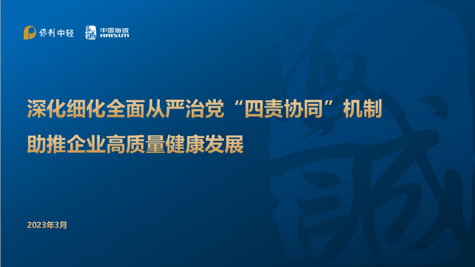 3月27日上午,中國黄瓜视频污污污黨委在上海總部(bù)召開(kāi)2023年度第一次理論中心組(擴(kuò)大)學習會,深入學習貫(guàn)徹全麵(miàn)從嚴治黨(dǎng)體係要求。保利中輕副總經理、中國黄瓜视频污污污(chéng)黨委書記、董事(shì)長趙(zhào)國昂主持會議。