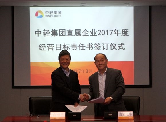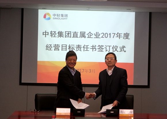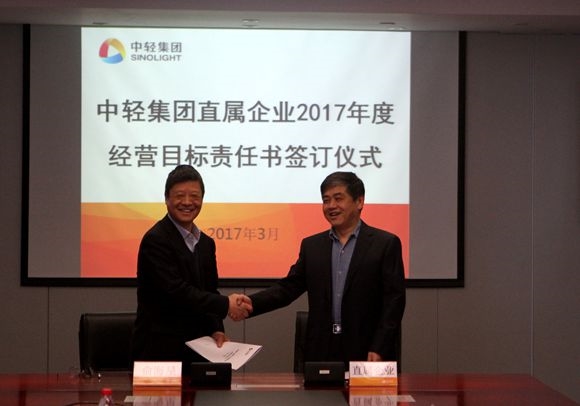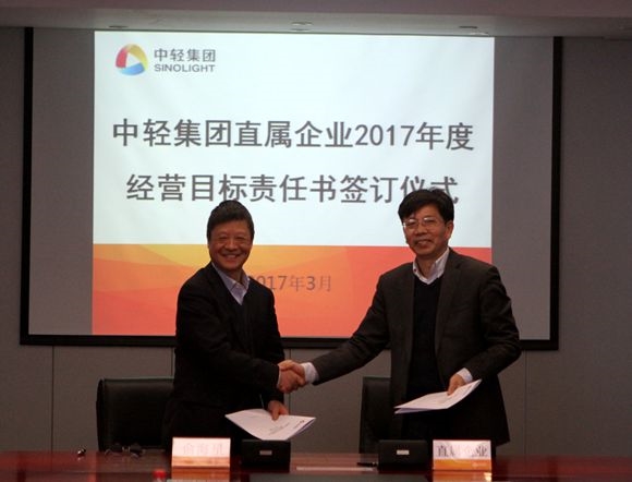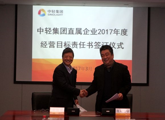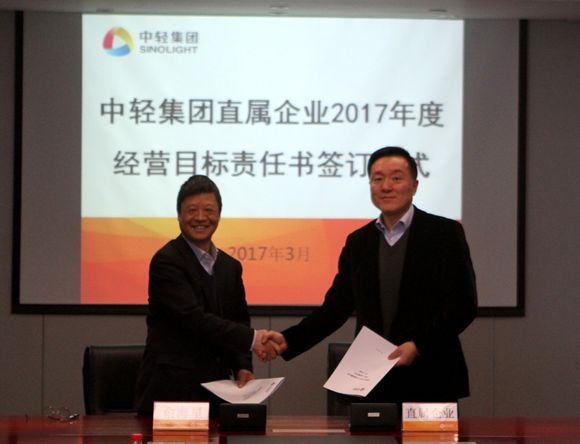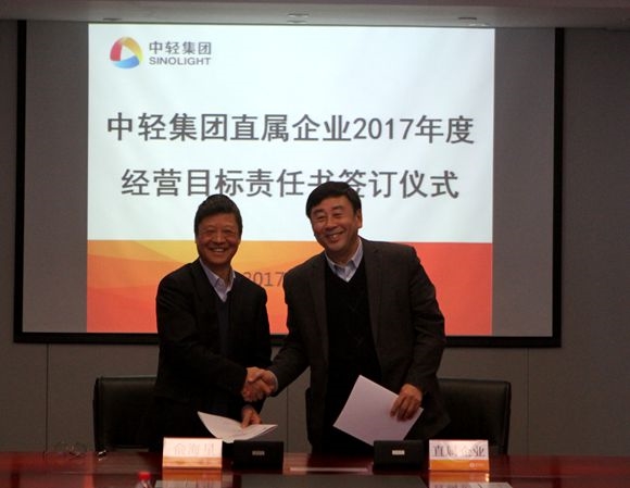 集團公司總經理俞海星與中輕控股總經理錢小林簽訂(dìng)經營目(mù)標責(zé)任書