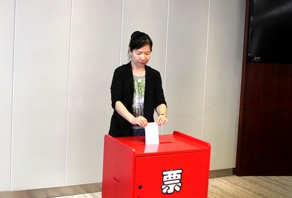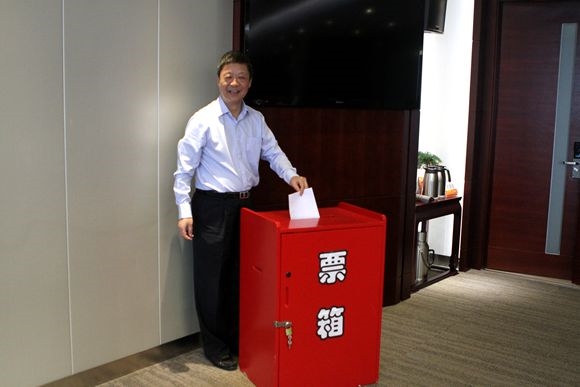 職工代表投入莊嚴的(de)一票