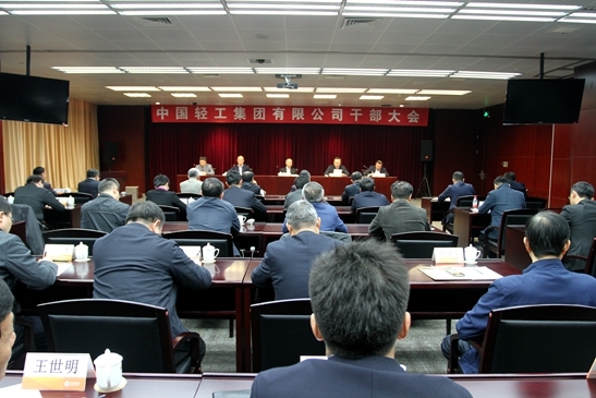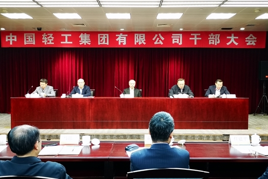 2018年11月(yuè)23日上午,中國輕工集團有限公司召開幹部大會,保利集(jí)團總經(jīng)理、黨委副書記張振高,保利(lì)集團副總經理劉軍才,保利集團人力資源管理中心副(fù)主任(rèn)張方斌等領導同誌出席會議。會議由中輕集團(tuán)董事長、黨委書記張萬順同(tóng)誌主持。