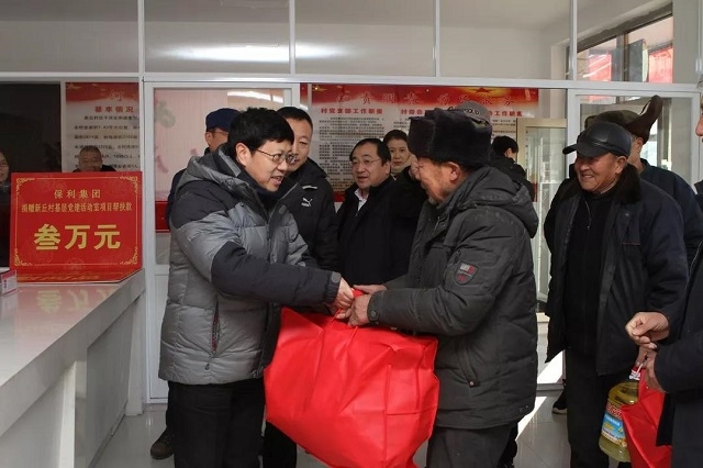 “感謝保(bǎo)利集團和中輕集團對我們的關懷和(hé)捐贈!”在喀喇沁旗河北街(jiē)道辦事處進行的(de)“愛在喀喇沁 扶貧送溫暖”2020年春(chūn)節捐贈儀(yí)式上,當新丘(qiū)村支(zhī)部書記王有良、村長郭瑞東分別從王(wáng)珂靈、陳曉麗手中接過黨員活動室建(jiàn)設(shè)幫扶款、春節慰問物(wù)資的時候,他們發自(zì)肺腑地表示感謝,並向(xiàng)保利集團贈送了寫(xiě)著“深入基層,精準扶貧,情係百(bǎi)姓(xìng),溫暖人心”的錦旗。三萬元的黨員活動室建設經費,可以讓(ràng)村裏的黨員能夠擁有一個更好的學(xué)習活動場所;捐贈給全村70歲以上老人和(hé)所有貧困戶的糧、油、棉被等生活用品(pǐn),則能夠(gòu)切實改善他們的生活。