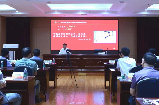2020年7月17日下午,中輕集團黨委委員、紀委書記崔久衡以(yǐ)《讓(ràng)黨旗在防控疫情鬥爭第一線高高飄揚》為主題(tí),從一個黨員(yuán)就是一麵旗幟,一個支部就是一個堡壘;怎麽幹?黨員不鬆勁,群(qún)眾才更有信心等方麵進行闡(chǎn)述,為皮革院黨員幹部講了一堂生動的黨課。中輕集團紀檢監察部(bù)主任羅傑、皮革院領導班子成(chéng)員、助理(lǐ)以上中層幹部、黨支部(bù)書記、支委及團支部(bù)委員(yuán)等參(cān)加學習,皮革院黨委(wěi)書記陳鐳主持本次(cì)專題黨課學習會。