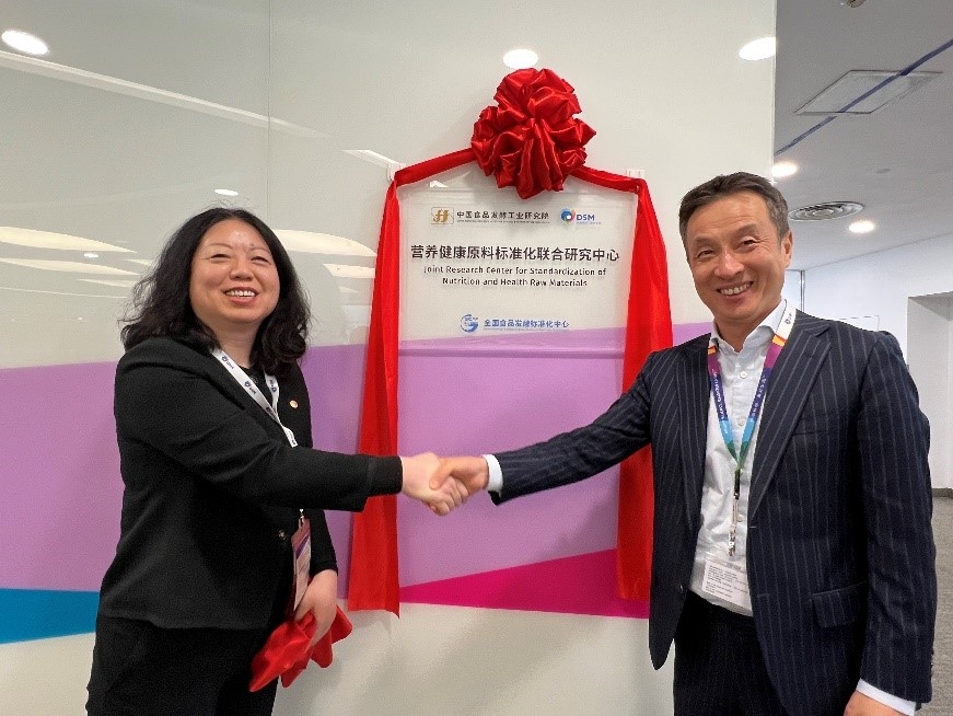 簽約儀式後,肖丹帶隊到帝斯曼(中國)總部和研發中(zhōng)心進行考察對接,參觀帝斯曼(màn)中心實驗室,並為“營養健康(kāng)原料標準化聯合研究中心(xīn)”揭牌。