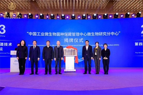 開幕式上,中國食品發酵工業研究(jiū)院與宜(yí)賓五(wǔ)糧液股(gǔ)份有限公司共建的“中國(guó)工(gōng)業微生(shēng)物菌種保藏管理中心白酒微生物研(yán)究分中心”揭牌(pái)儀式順(shùn)利舉行,保利中輕副(fù)總經理,中國(guó)食品發酵工業研究院黨委書記、董事長肖丹與(yǔ)宜賓五糧液股份有限公司總工程師楊韻霞共同(tóng)揭牌。安勝傑與中國酒(jiǔ)業協會理事長宋書玉(yù),農業農村部中國農村技術開發中心副主任張鬆(sōng)梅,五(wǔ)糧液集(jí)團(股份)有限公司黨委書記、董事長曾從欽,中(zhōng)國工程院(yuàn)院士、江南(nán)大學校長陳衛共同見證。“中國(guó)工業微生物菌種保藏管理中心(xīn)白酒微生物研究分中心”是按(àn)照國家標準菌(jun1)種資源庫組建的白(bái)酒行業最大的菌種保藏平台,該(gāi)平台現已收藏五糧(liáng)液釀(niàng)造微生物菌種400餘種、1000餘株、20000餘份備份,為五(wǔ)糧液乃至中國(guó)白酒技術創新及生產應用提供全麵的菌種資源(yuán)。