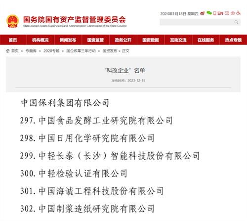 中國製漿造(zào)紙研究院新入(rù)圍國(guó)務院國資委“科改企業”名單(dān),保利中輕科改企業增至6家。在國務院國資委(wěi)年度專項考核中,中國食品發酵工(gōng)業研究院、中輕檢驗被(bèi)評為“標(biāo)杆企業”,中國日用化學研究院、中輕長泰被評為(wéi)“優秀企業”。