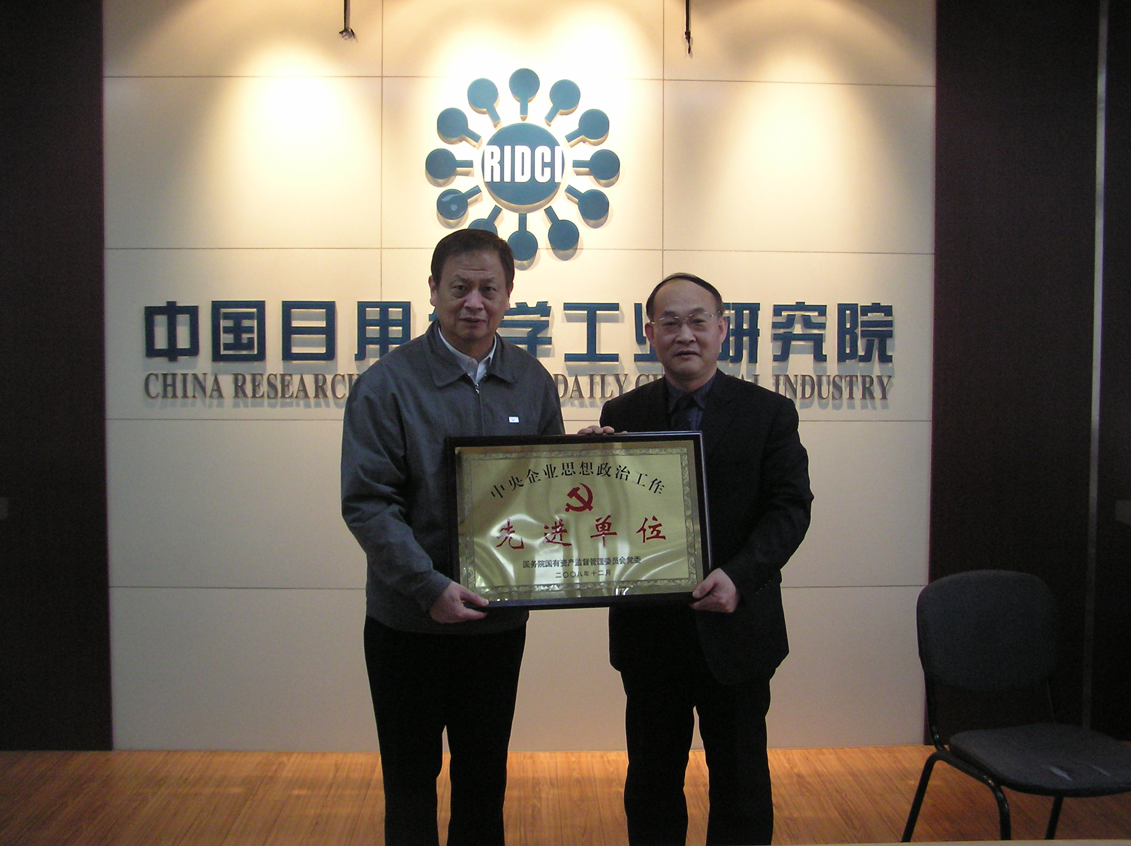 2009年,中國日用化學工業研究院榮獲國務(wù)院(yuàn)國資委委表彰(zhāng)的中央企業(yè)思想政治(zhì)工作先進(jìn)單位。2010年2月24日,集團公司黨委副書記、紀委書記梁江東同誌到中國日用化學工業研究院開展工(gōng)作,代表集團(tuán)公司黨委給中國日用化學工業研究院頒發了中央(yāng)企業(yè)思想政治工作先進單位獎牌。