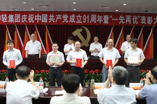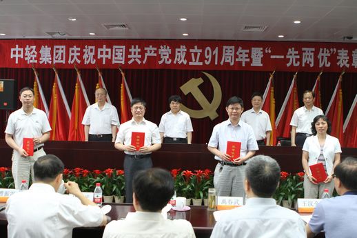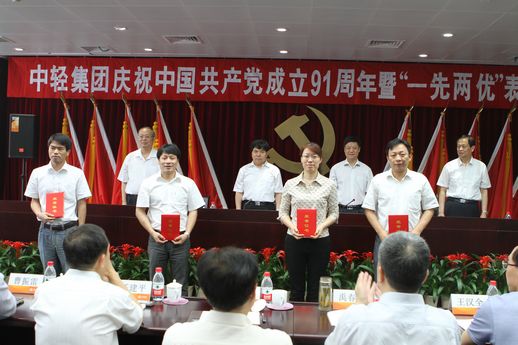 2012年6月29日下午,中輕集團慶祝中國共產黨成立(lì)91周年暨“一先兩優(yōu)”表彰大會在集團公司新的總部(bù)辦公大樓——中輕大廈隆重召開。會議隆重表(biǎo)彰了集團(tuán)公司先進基層黨組織、優秀共產(chǎn)黨員、優秀黨務工作者和集(jí)團(tuán)公司2009-2011年度創建“四(sì)好(hǎo)”領導班子先進集(jí)體。集團公(gōng)司(sī)黨委書記、董事長陳鄂生在會上作了重要講話。集團公司總經理俞(yú)海(hǎi)星主持會(huì)議。