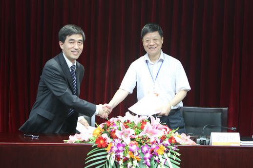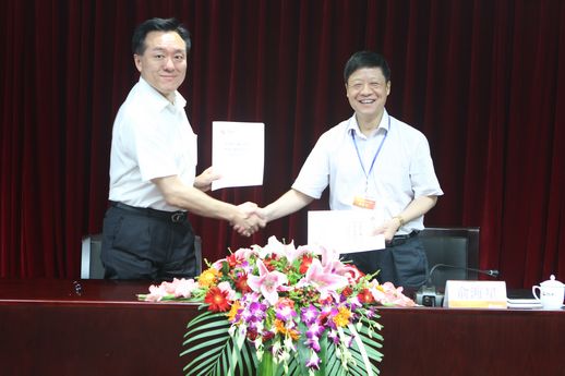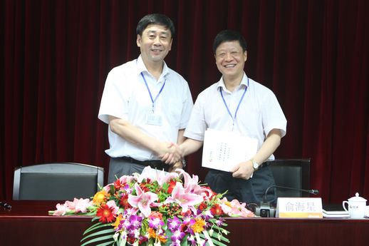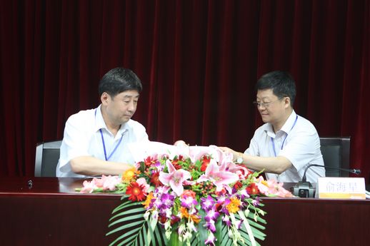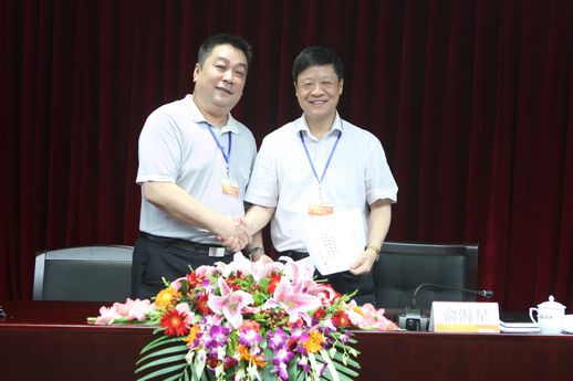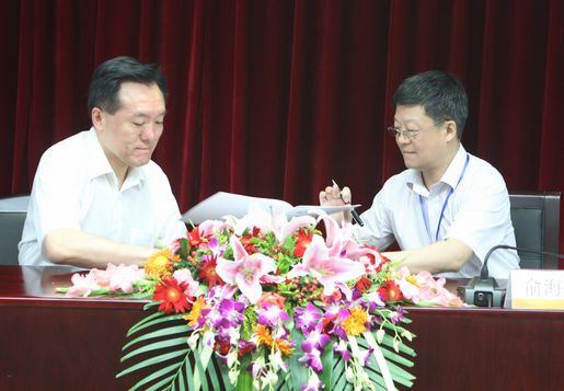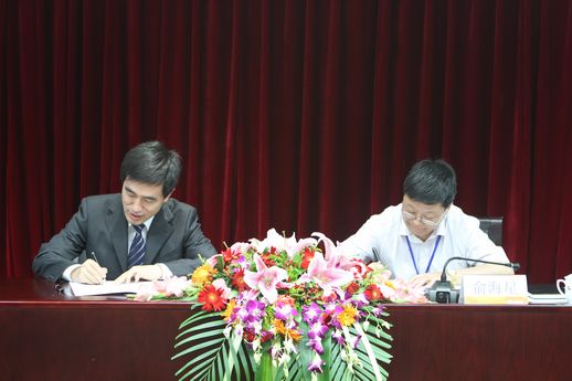 集團公司總經理俞海星與食品發(fā)酵(jiào)院院長蔡木易簽訂任務合同書