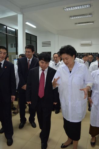 陳鄂生董事長陪同國務委員劉延東、柬(jiǎn)埔寨(zhài)副(fù)首相梅森安參觀實驗室(二)