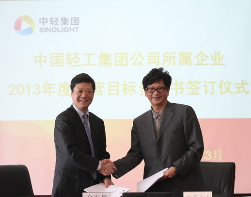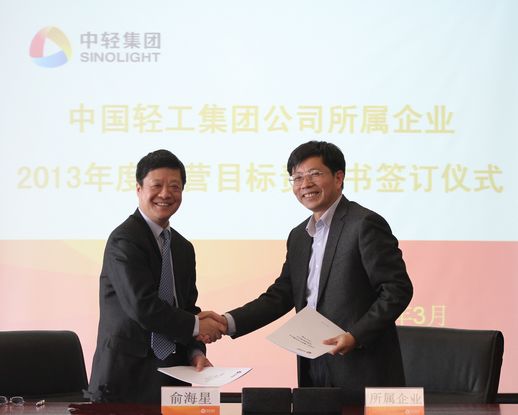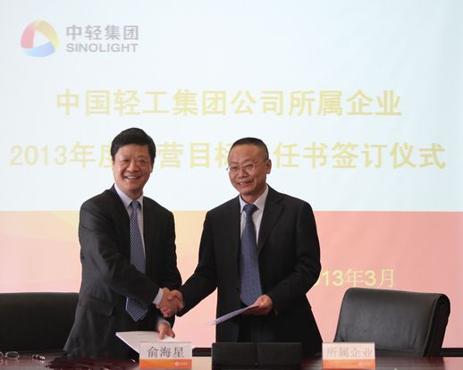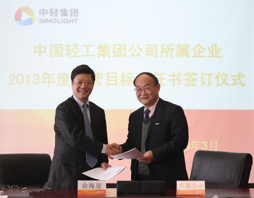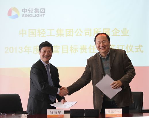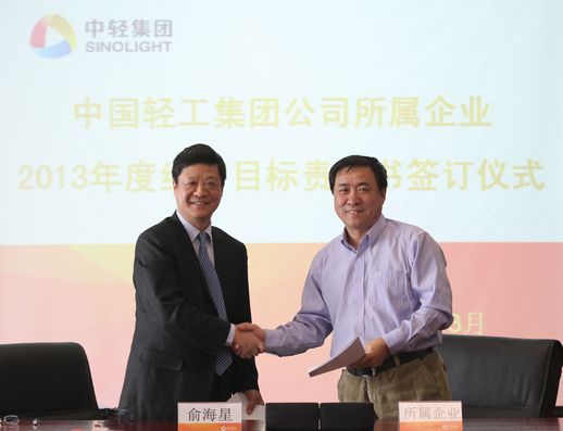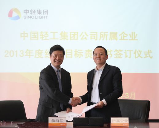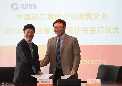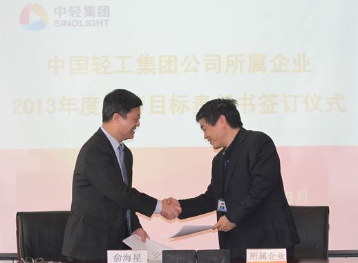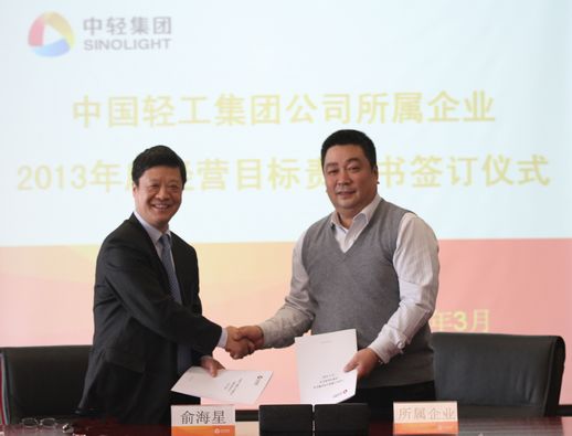 俞海星總經理與中輕對(duì)外公司總經理王向陽簽訂目(mù)標責任書