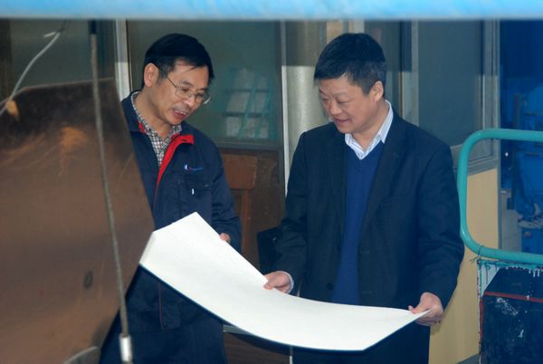 青山(shān)紙業總經理徐宗明向俞海星總(zǒng)經理介紹溶(róng)解漿項目 福建輕紡副總經理黃(huáng)國英陪同