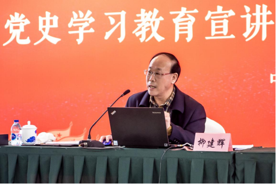 會上,柳建輝教授以《百年大黨的發展曆程與黨史(shǐ)學習教育》為主題,圍繞(rào)學習領會習近平總書(shū)記關於黨的曆(lì)史的重要論述,深刻(kè)闡釋了在全黨開展黨史學習教育的重(chóng)大意(yì)義,係統回顧了(le)百年來我們黨團結帶(dài)領人(rén)民走過的光(guāng)輝曆程、取得的輝煌成就、作出(chū)的傑出(chū)貢獻,全麵介紹了開(kāi)展黨史學習教育的主要內容(róng)和重點任(rèn)務(wù)。