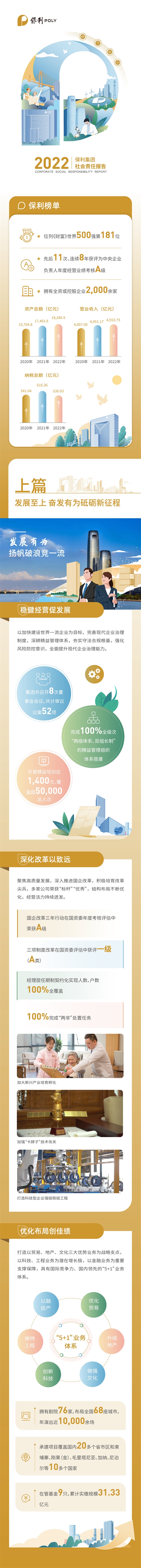 近日,保利集團發(fā)布2022社會責任報(bào)告,並獲(huò)中國企業社會責任報(bào)告評級(jí)專家委員會五(wǔ)星評級。報告解讀改革發(fā)展、科技創新、生態治理(lǐ)、保障民生等領域(yù)的履責效能,向社會各界展現出(chū)保利以擔當致美好的堅實步伐。