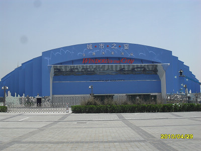 城市之窗主題演繹秀為上海世(shì)博會的臨時劇場,建築基底麵積6132.60 ㎡,地上麵積6282.06㎡的單體建築,高(gāo)度19.700m ,共分3 個防火(huǒ)分(fèn)區,功能為世(shì)博期間進行演繹表演,容納2200 人的固定座位, 每天4 場, 每場演出(chū)半小時。建築層數:地上1 層,建(jiàn)築高度19.700 m; 其最大跨度為71.075m,全長104.07m。
