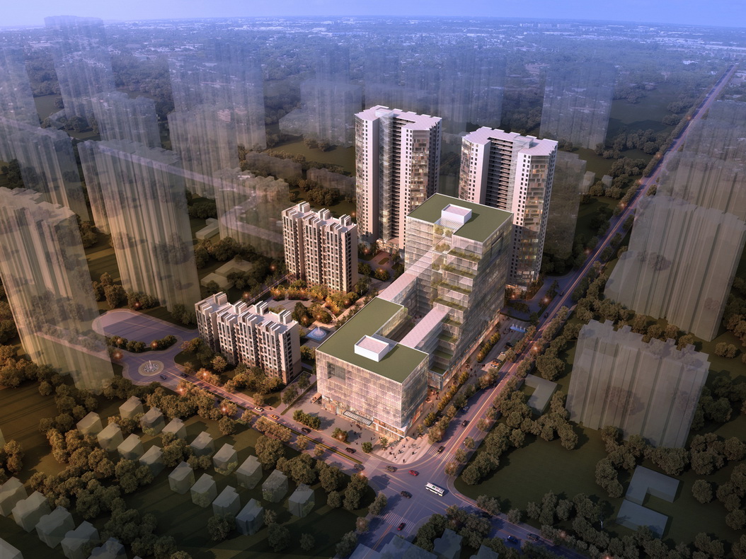 本項目位於江蘇昆山花橋,曹安路與(yǔ)兆豐路交匯處,是(shì)昆山市重點開(kāi)發區域之一(yī)。本項目的規劃設計在功能結構與布局上,在城市總體規(guī)劃的引導(dǎo)下,積極引入城市設計的內容,發揮建築(zhù)設計及環境設計的能動作用。本工程為商住混合用地,主要含4棟高層住宅樓、一棟商(shāng)業辦公綜合樓。基地用地麵積31438.4㎡,容積率4.96,地上計容總建築麵積156267㎡。地下總建築麵積約27590㎡。
